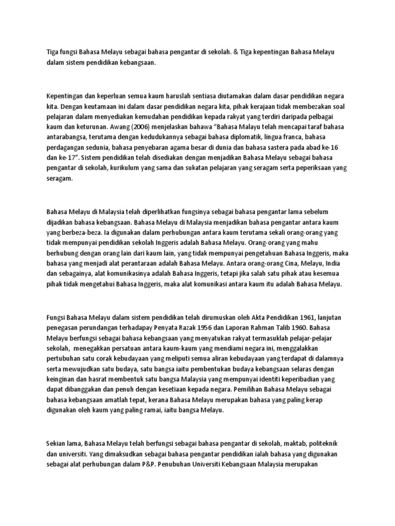 Tiga Fungsi Bahasa Melayu Sebagai Bahasa Pengantar Di Sekolah Pdf